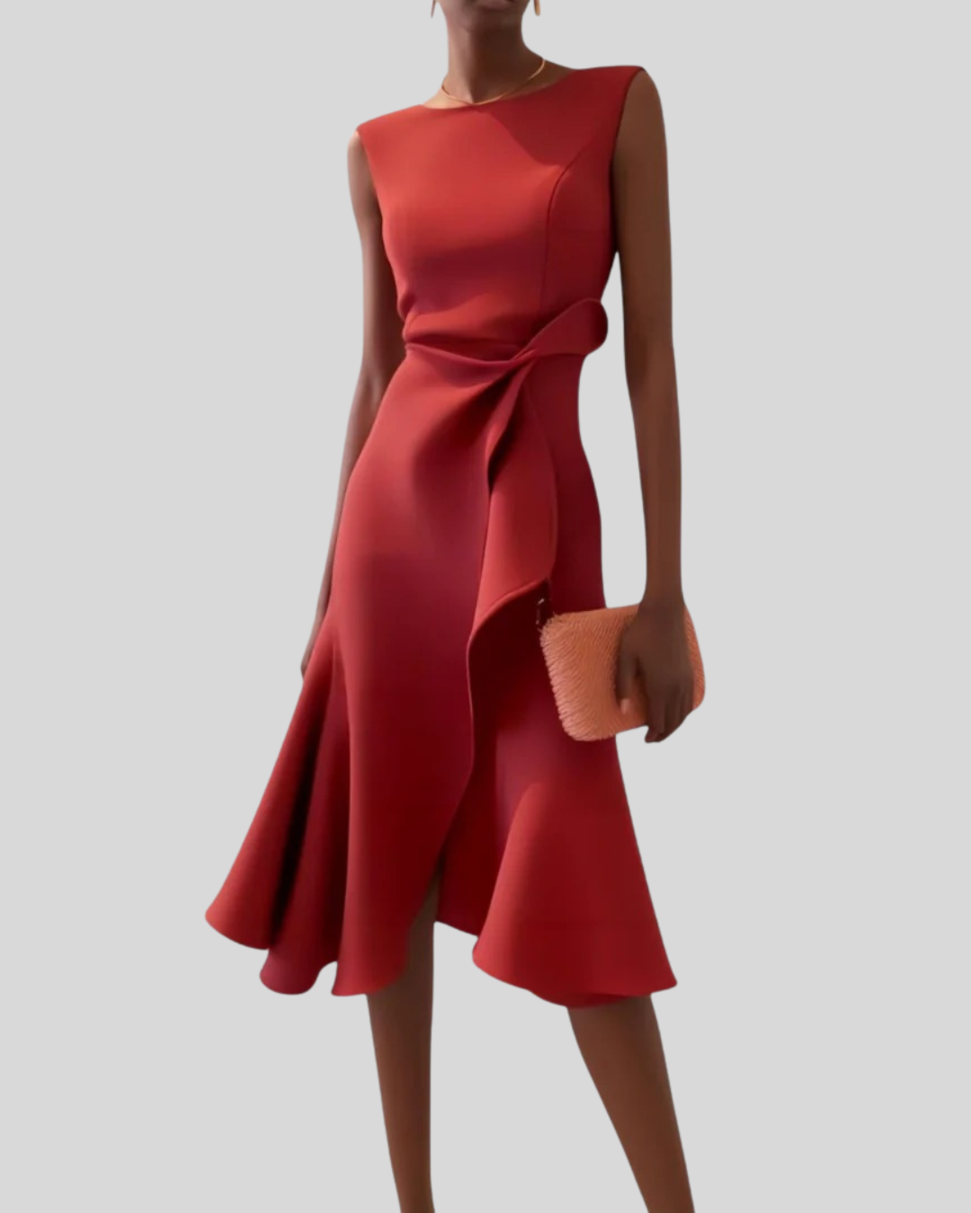 Oppdag tidløs eleganse med Modehus Asymmetrisk Midi Kjole, preget av en drapert silhuett og en asymmetrisk kant som gir et vakkert og moderne utseende. Den ermeløse skjæringen og den flatterende passformen skaper en raffinert form som beveger seg vakkert med deg.