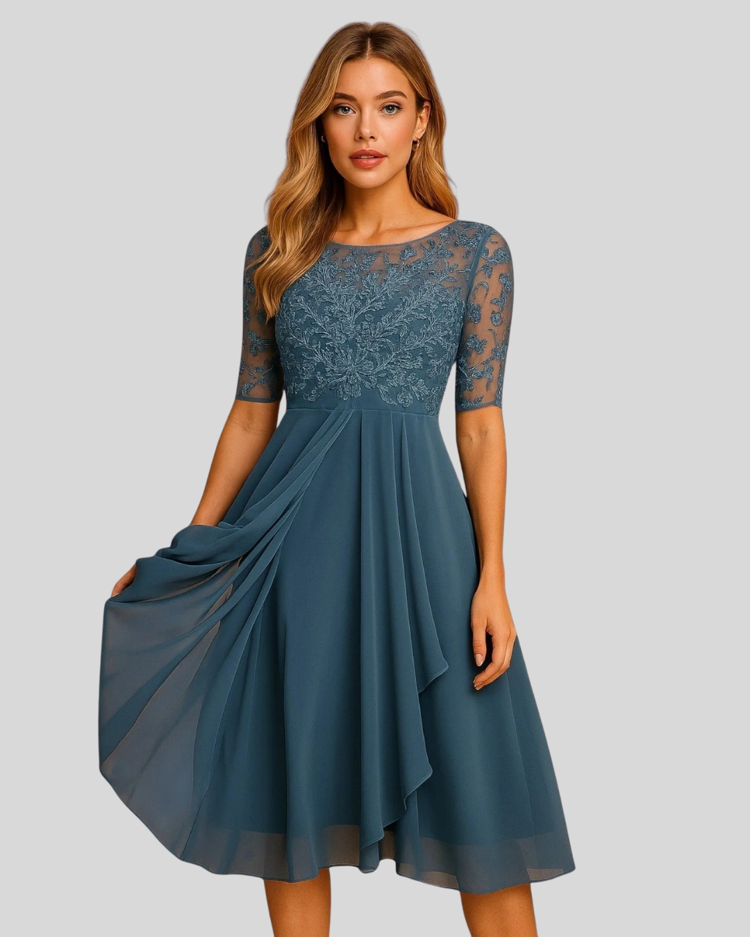 Modehus | Klassisk A-Linje Kjole med Blonde Detaljer