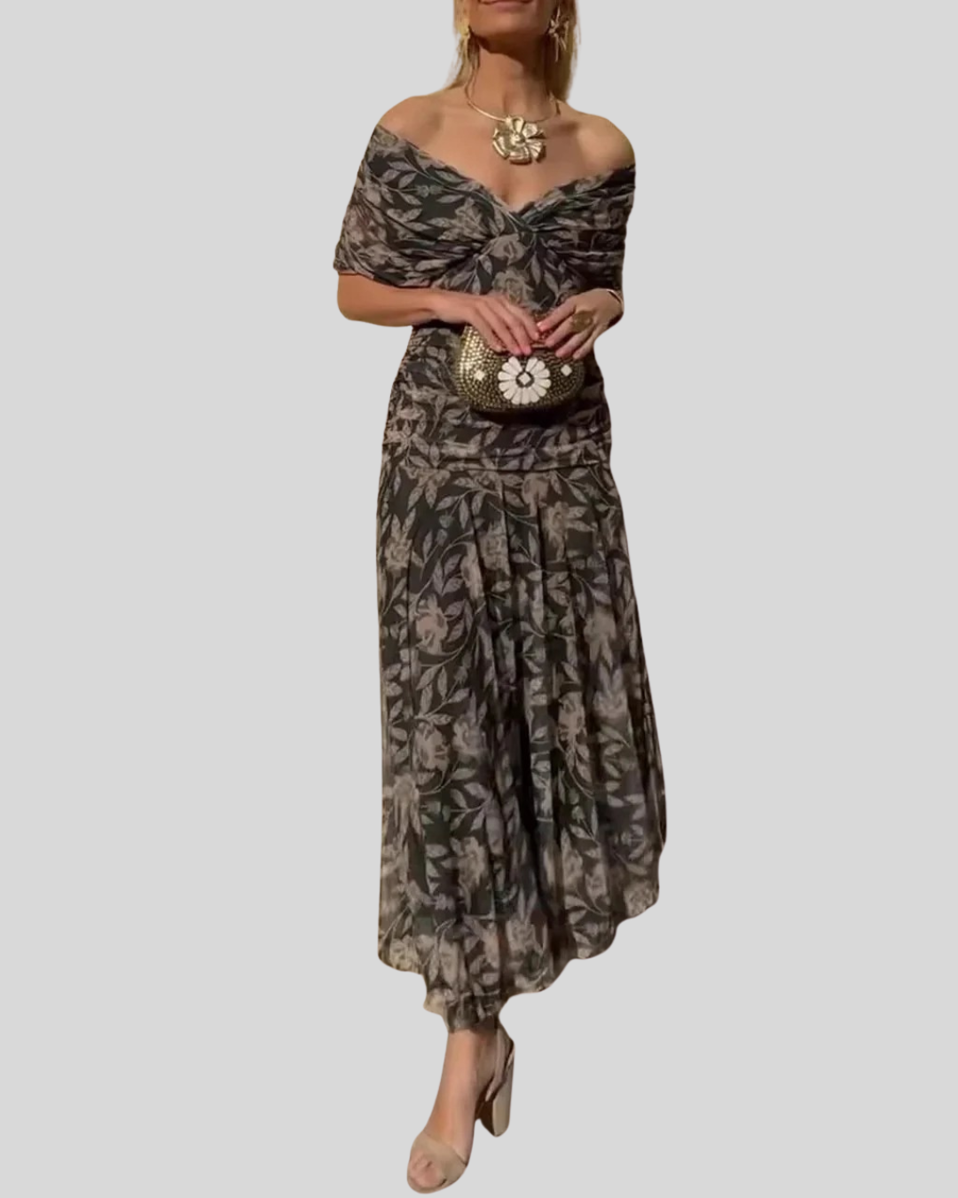 Modehus | Maxikjole med Blomsterprint og Uten Skuldre