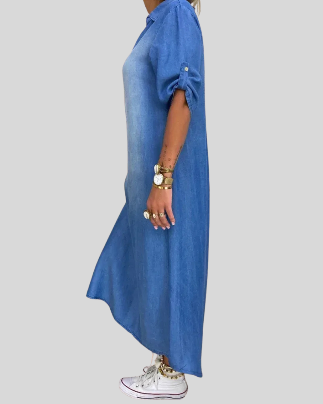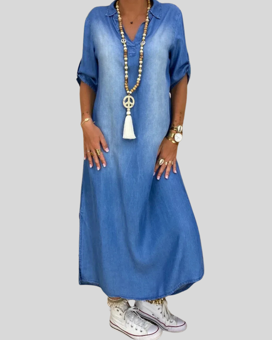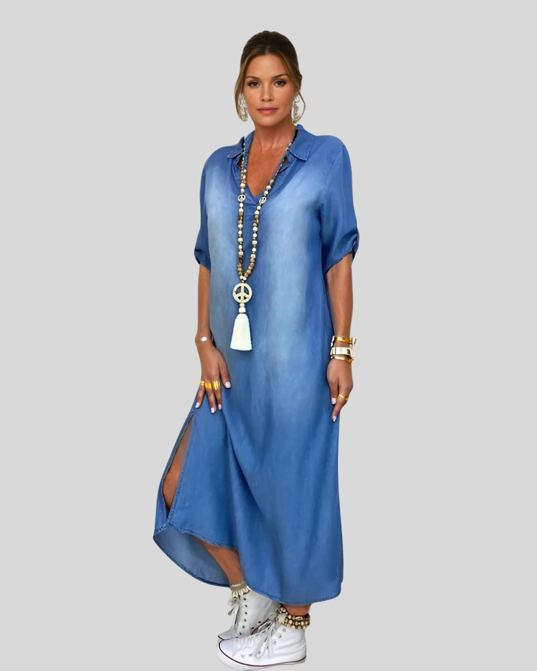 Oppdag Modehus sin lange kjole inspirert av denim, som kombinerer en avslappet stil med smart design for å fremheve silhuetten din. Den myke, vaskede finishen og luftige silhuetten gir deg den perfekte følgesvenn for uformelle dager når du ønsker å føle deg velstelt. Minimalt med innsats, maksimal allsidighet.